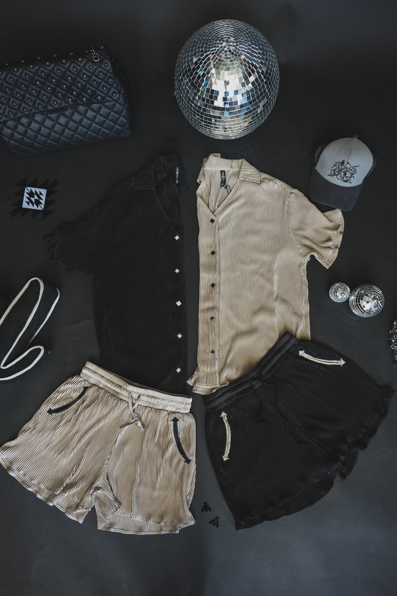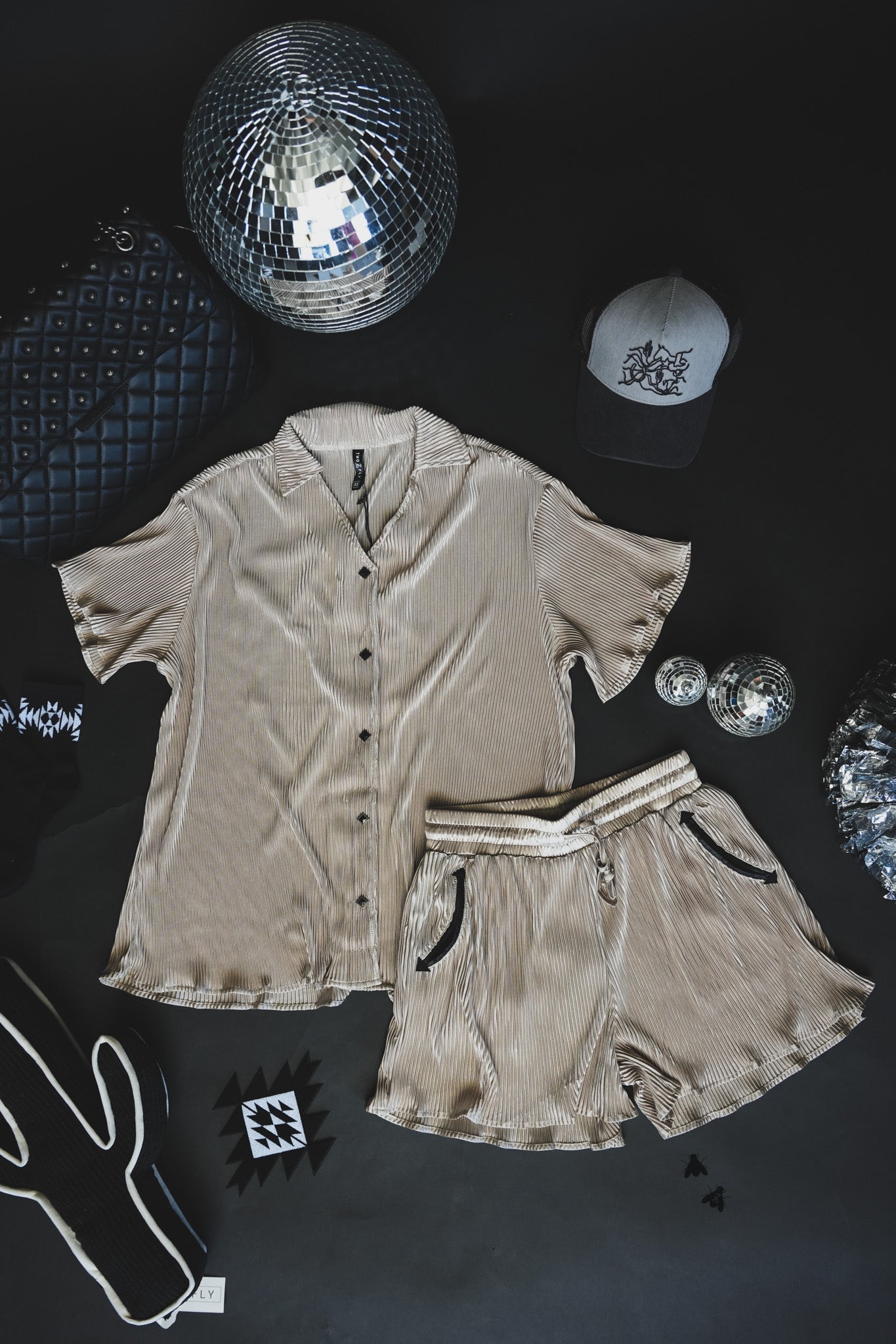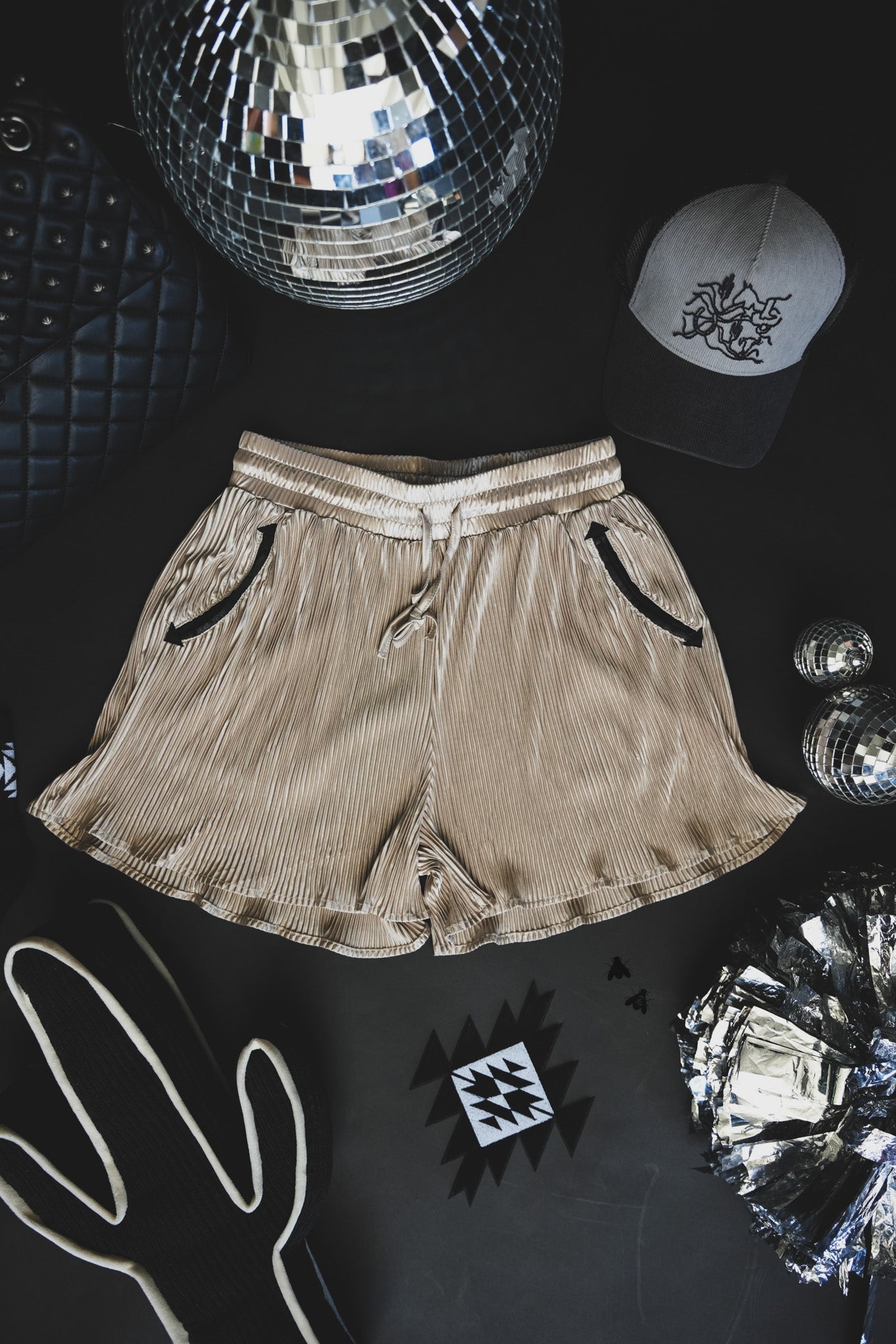 taupe plisse shorts.