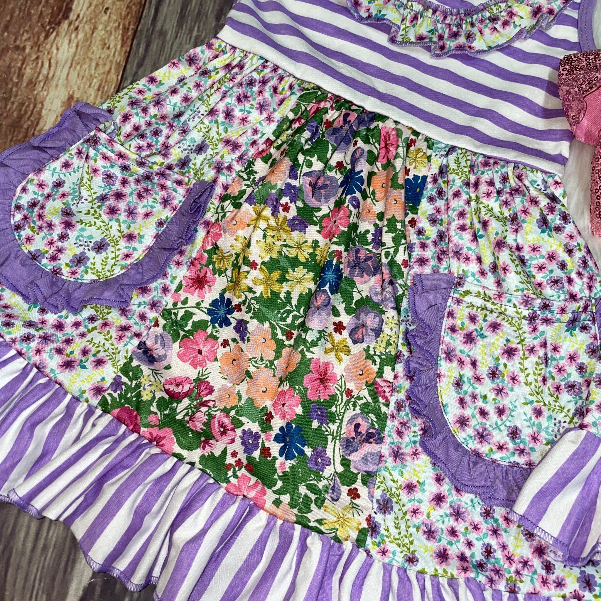 Lavender Floral & Stripe Pocket Dress